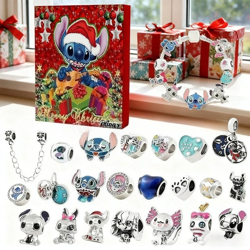 스티치 크리스마스 어드벤트 캘린더 디즈니 미키 마우스 귀여운 24일 크리스마스 카운트다운 어린이 DIY 팔찌 클래식 장난감 어린이 선물