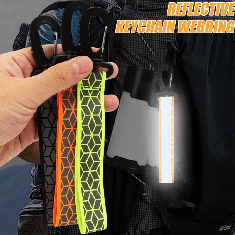 야외 캠핑을위한 2Pcs 반사 스트랩 펜던트 키 체인 밤 달리기 사이클링 배낭 안전 경량 밝은 열쇠 고리