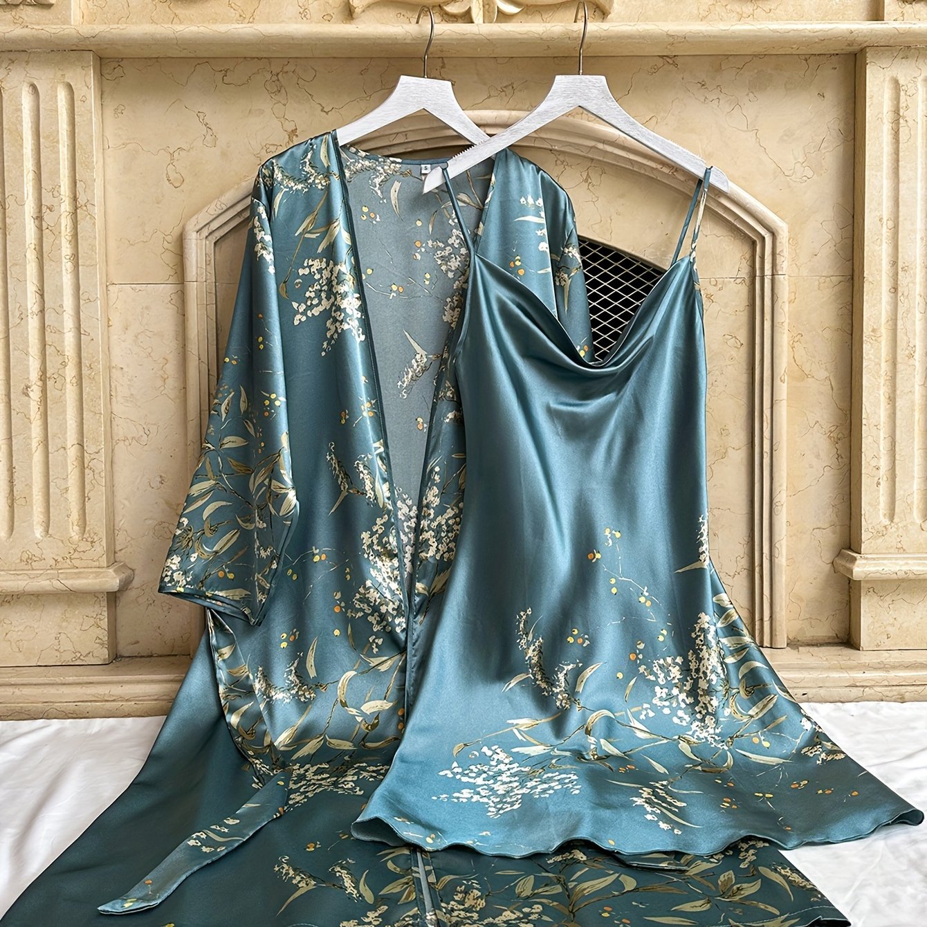 TEMU 가을과 겨울용 2피스 새롭고 작고 체리 프린트 패션 레트로 우아한 홈 슬립웨어
