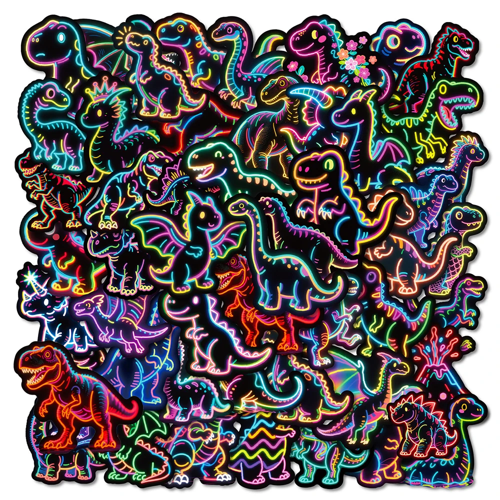 50PCS 재미 있은 공룡 만화 스티커 네온 스타일 동물 낙서 장식 DIY 어린이 장난감 수하물 노트북 기타 자동차 자전거 데칼