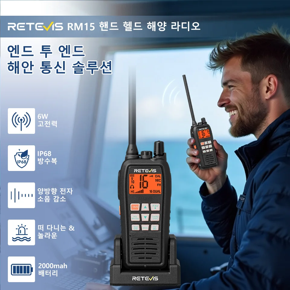 Retevis RM15 해양용 무선 송수신기 VHF IP68 방수 플로팅 무선 핸드헬드 휴대용 장거리 워키토키 보트용
