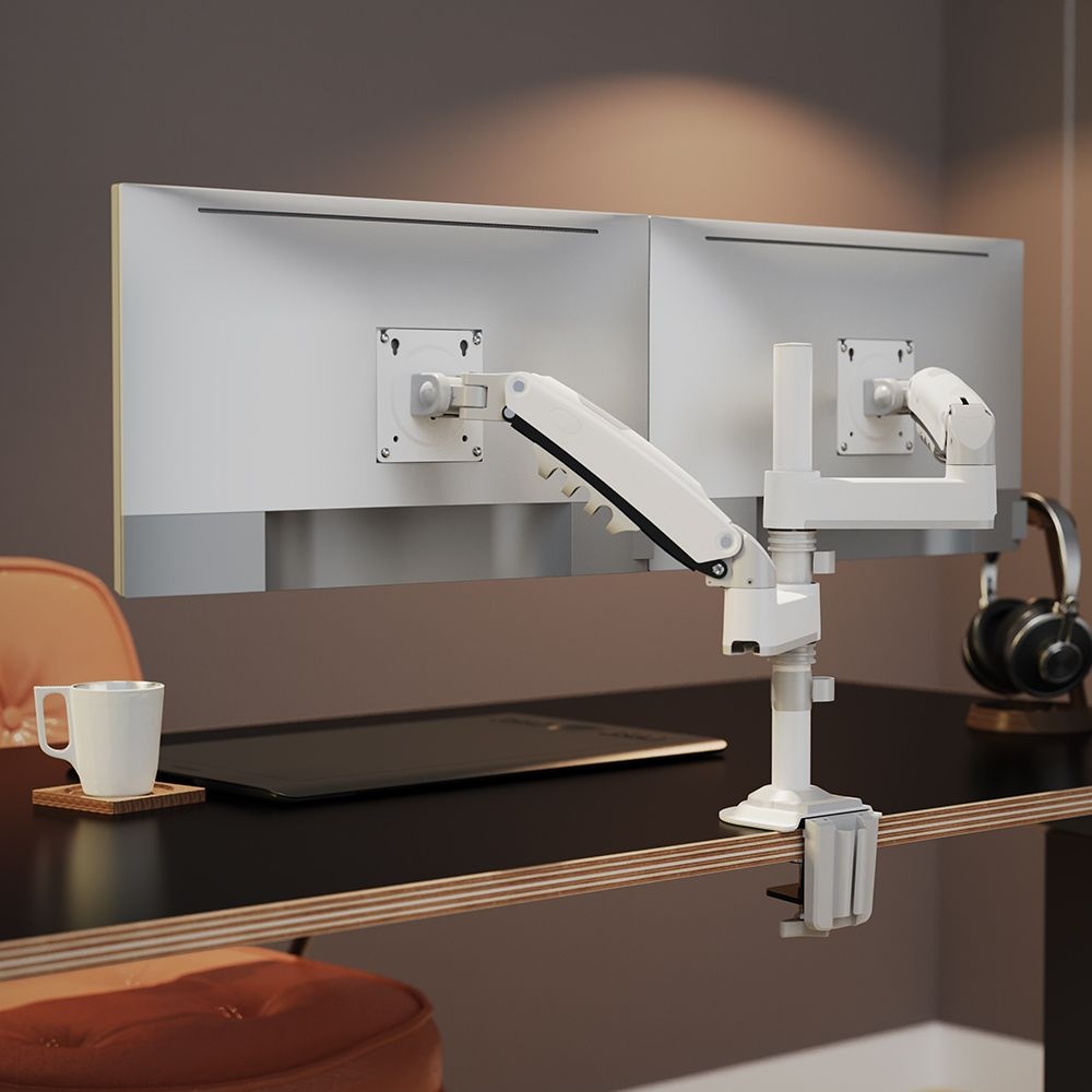 TEMU 듀얼 디스플레이용 듀얼 암 모니터 스탠드, 최대 22파운드까지 지지 가능, 360° 조절 기능, 13~32인치 컴퓨터 모니터에 적합.
