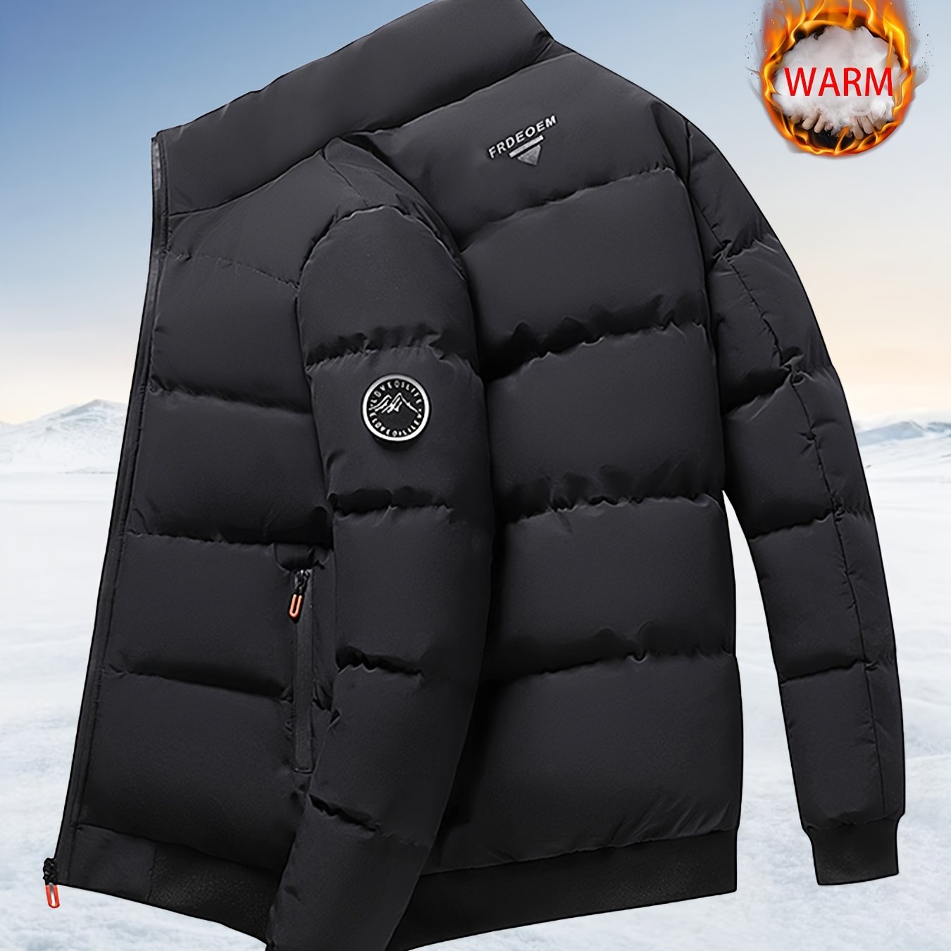 TEMU 남성용 두꺼운 겨울 코트 | 따뜻하고 방풍 스탠드 칼라 재킷, 섬유 안감, 청소년 및 성인용, 캐주얼 웨어, 내구성 좋은 아우터, 추운 날씨 야외 활동에 적합