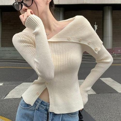 [엄지척]여성 언벨런스 오프 숄더 여리 스타일 니트 티셔츠_19599439_667501