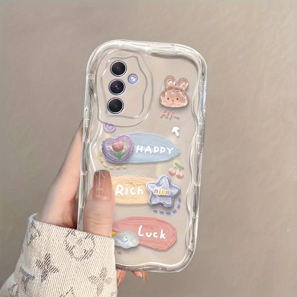 TEMU 폰 케이스: 삼색 페인트 스테레오 토끼 곰 플러시 케이스, S25 Ultra, A56/A54/A52/A13, A16-5G/S24/S20 FE/S21 Plus/S22/S22 Ultra, 투명 S25/갤럭시 S23/A05/A12/A13/A15/S22/S23/A73/A55/A06 호환|S21케이스|S22케이스