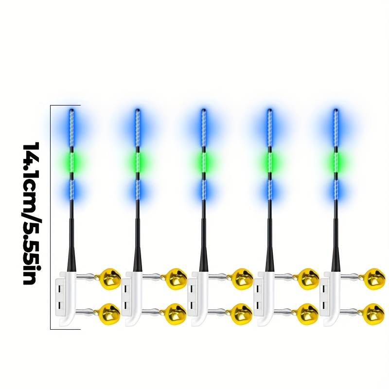 TEMU 5개 컬러 교정용 낚시대 팁 라이트 알람 포함 - 야간 낚시용 LED 비트 표시기, 배터리 구동 (배터리 미포함), 내구성 ABS 소재, 밝은 디스플레이, 낚시 장비