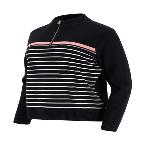 [피에이티]융본딩 스트라이프 반짚업 스웨터 1L83433