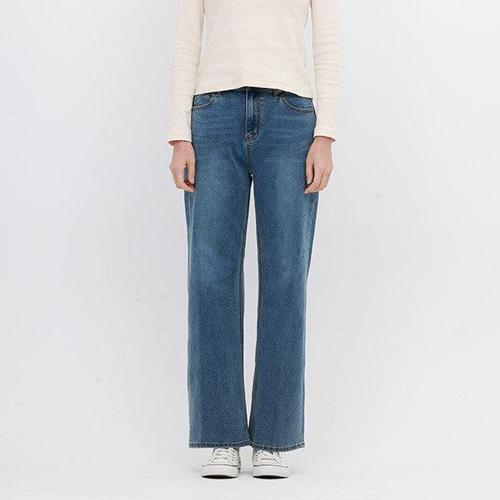 [잠뱅이]여성) 아이보리 오비안밴드 시계포켓 변형 노말워싱 일자 양모 데님_AN4DIG858-IV