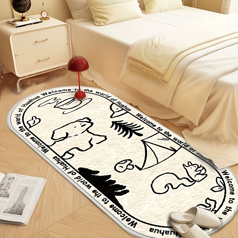 TEMU 고화질 프린트 오벌 매트, 양면 밑단 처리 욕실 게임룸 거실 침실용 미끄럼방지 패션 매트, 세탁기 사용 가능, 쉬운 청소, 거실·침실·주방·세탁실 선물용 생일 선물