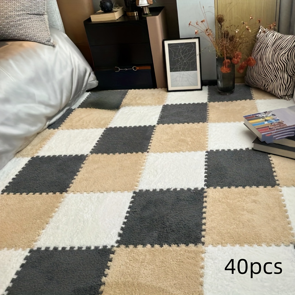 TEMU 40피스 인터락킹 퍼즐 바닥 매트 - 플러시 소프트 체크무늬 미끄럼 방지 러그, 11.8x11.8인치 두께 1cm, 폴리에스터 및 아세테이트 100%, 침실 거실 게임룸 장식용 방음 충격 흡수