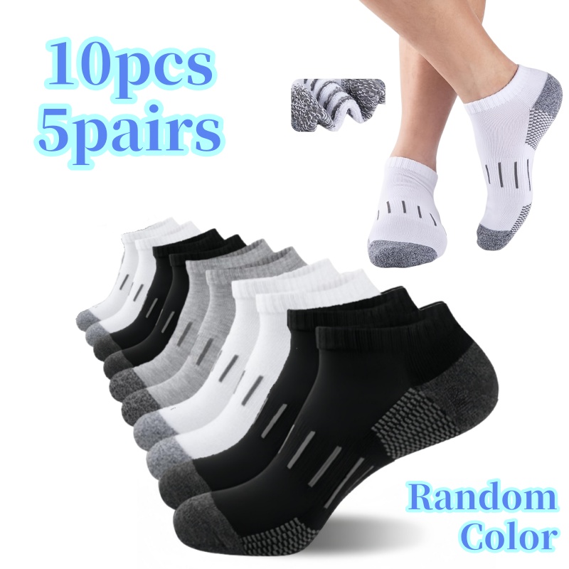 TEMU 10개/5개 남녀공용 쿠션 숏 삭스, 런닝 운동 양말, 퍼포먼스 숏 삭스, 간편한 패턴, 가벼움, 단색 , 윤곽형 발 디자인, 스포츠에 편안함, 내구성 및 탄성, 땀 흡수 및 흡습성