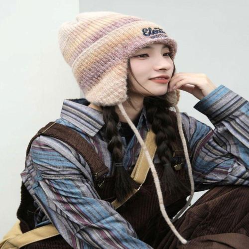 [에이치플러스몰]여성 겨울모자 예쁜컬러 레인보우 니트 귀달이 비니