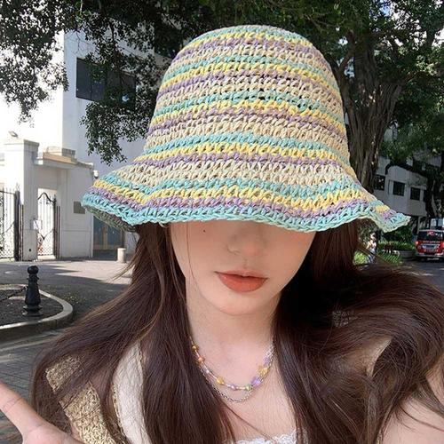 여름 모자 컬러 레인보우 햇빛차잔 밀짚모자 여행용 WFFVZJN