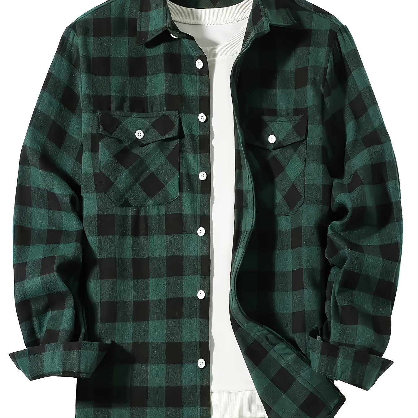 TEMU 2025 남성용 트렌디한 체크무늬 셔츠, 2025 봄/가을 신상품, 해외 직구 루즈핏 긴팔 셔츠 재킷