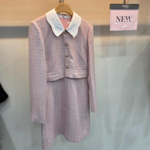 [로엠]배색 카라 트위드 2in1 원피스 (RMOWE24R12)_SH