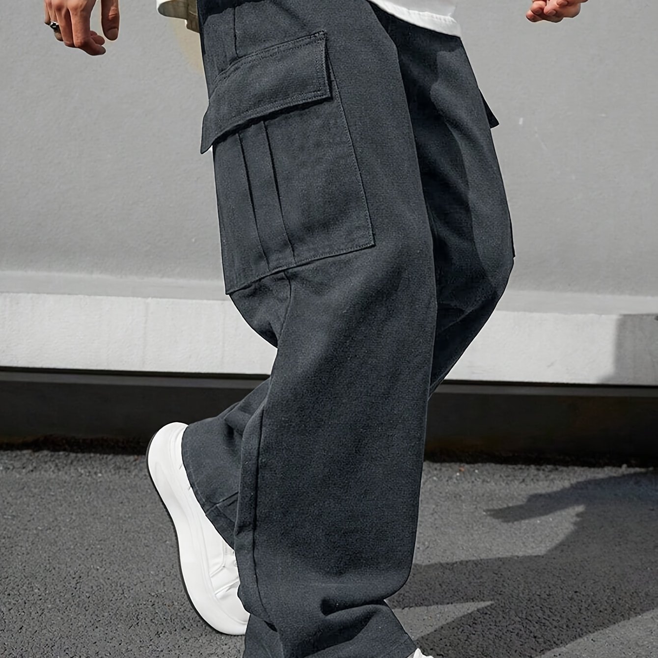 TEMU 남성 캐주얼 바지, 가벼운 비즈니스 레그 와이드 레그 정장 바지, 비즈니스 캐주얼 및 포멀한 행사 모두에 적합합니다. 버튼 및 지퍼 클로저 디자인, 클래식 단색, 사계절 내내 내구성이 뛰어난 원단
