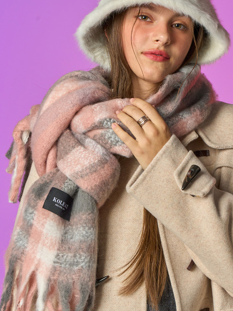 [콜릿] 겨울 히트양면 보온 체크 목도리 [페일핑크]