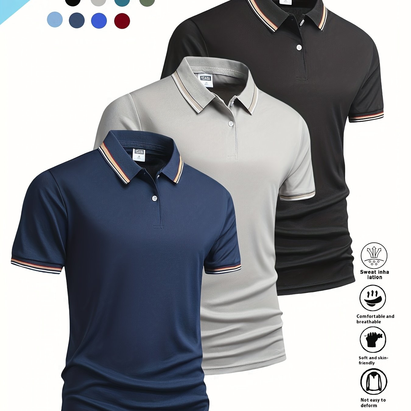 TEMU 3개 남성용 여름 반팔 폴로 셔츠 - & 솔리드 컬러 캐주얼 스포츠웨어, 버튼업 칼라, 비즈니스, 여행, 일상복, 클래식 칼라 디자인, 내구성 있는 소재