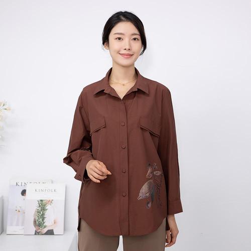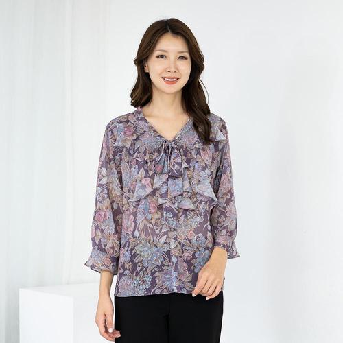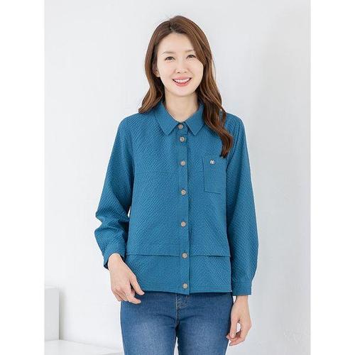 [모슬린]엄마옷 엠보 카라 오픈 긴팔 블라우스 MQG126433 마담 미시 중년여성 빅사이즈 할머니옷 50대 60..