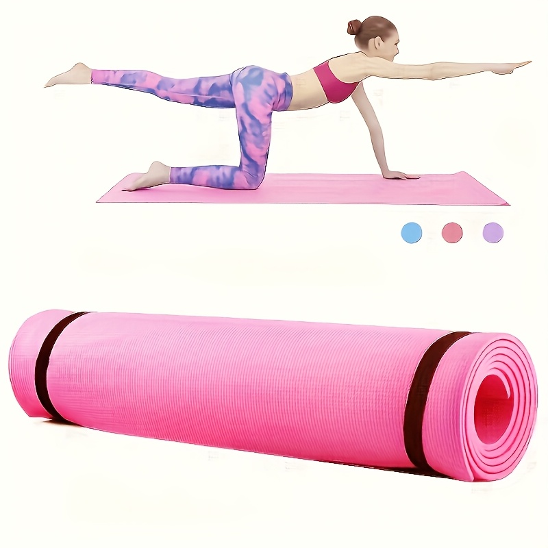 TEMU 이것은 4mm 두께의 고밀도 EVA 요가 매트이며 스트랩이 장착되어 있습니다. 가볍고 내구성이 뛰어나 가정에서 운동, 야외 활동, 요가 및 필라테스에 이상적입니다. 다양한 운동을 위한 다용도 피트니스 매트입니다.