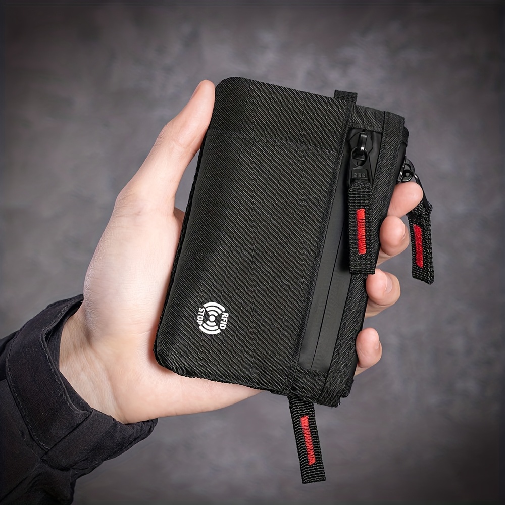 TEMU 세련된 RFID 차단 슬림 지갑 – 남녀 공용 지퍼형 동전 포켓이 있는 컴팩트한 카드 홀더, 블랙 디자인, 튼튼한 소재, 다양한 수납 공간, 가볍고 휴대하기 쉬운 소형 지갑