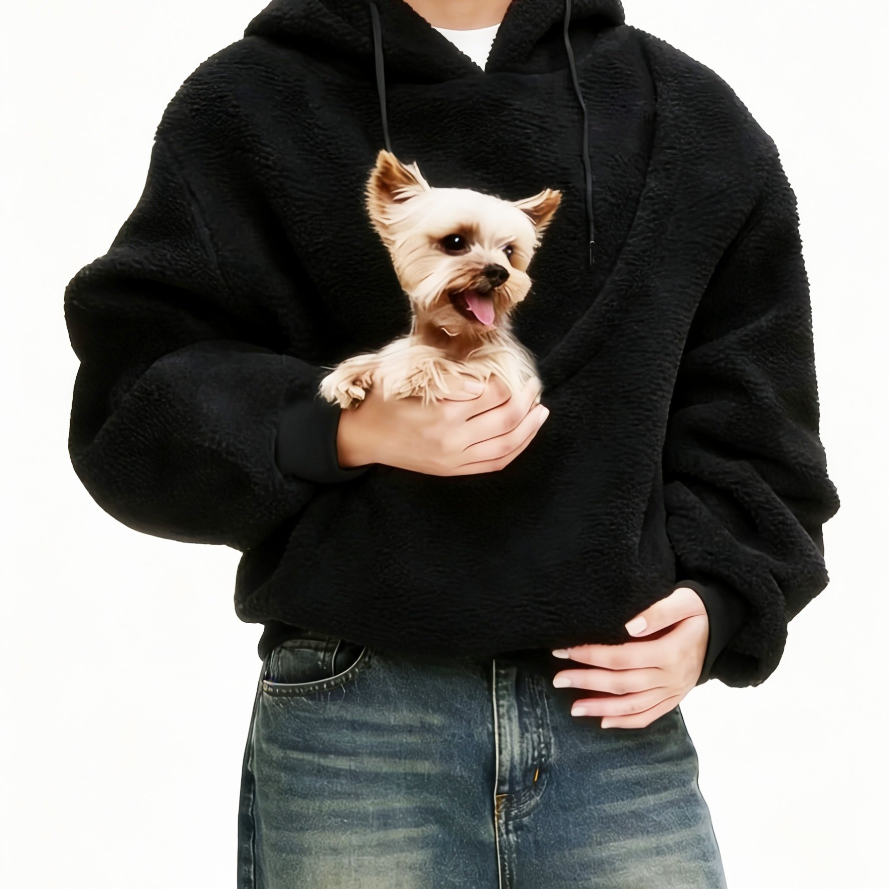 TEMU 포근한 컬러블록 소형견용 후드티 - 캐주얼 4다리 수트, 세탁기 사용 가능 폴리에스터, 겨울 외출에 완벽