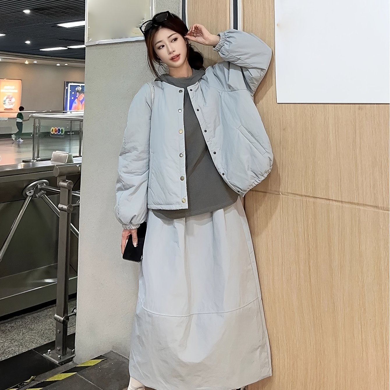 TEMU 여성 한국 스타일 라이트 블루 숏 재킷 - 부드러운 버튼 프론트 클로저, 구조적인 칼라 & H라인 실루엣, 가벼운 겨울 코트 (오피스, 통근, 캐주얼 의상) - 가을/겨울 아우터, 통근복, 오피스룩, 클래식 디자인
