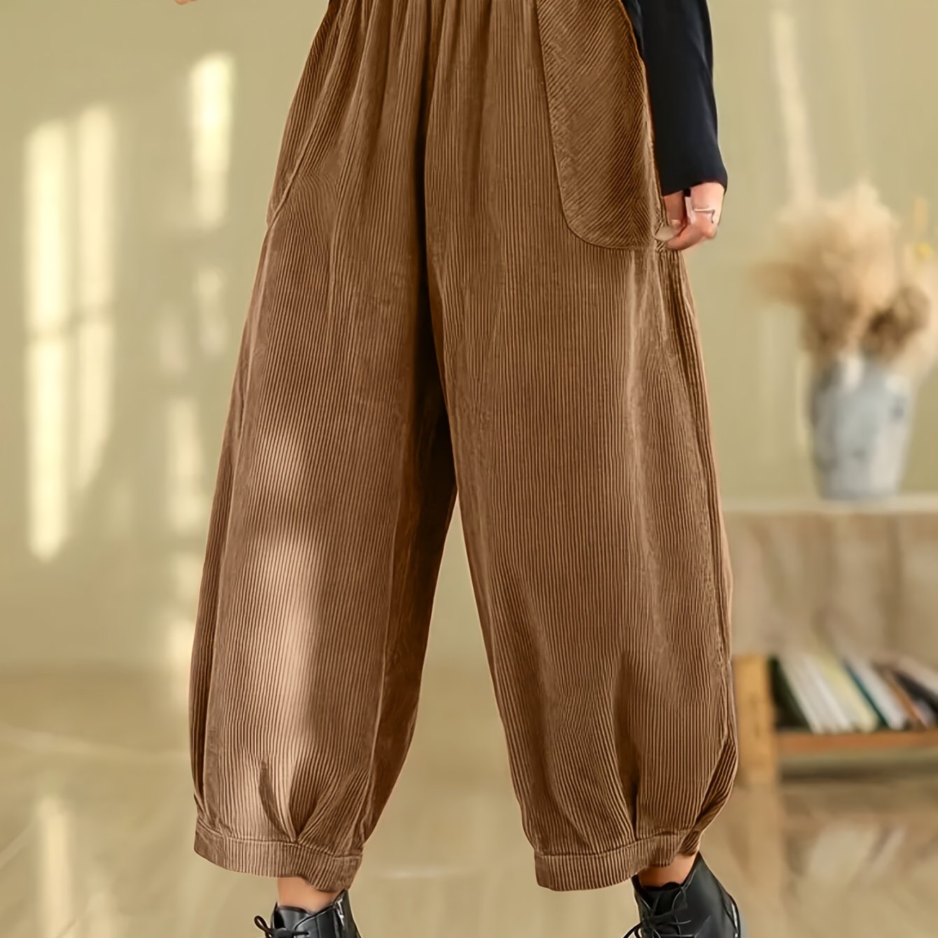 TEMU 여성용 와이드 레그 하렘 팬츠 - 겨울용 따뜻한 바지, 탄력 있는 허리 & 커프, 레그 발목/허벅지 오프닝, 헤비듀티 포켓 (신축성 없는 원단), 캐주얼에서 드레시한 룩까지 (블랙) - 세탁기 사용 가능한 신축성 없는 바지