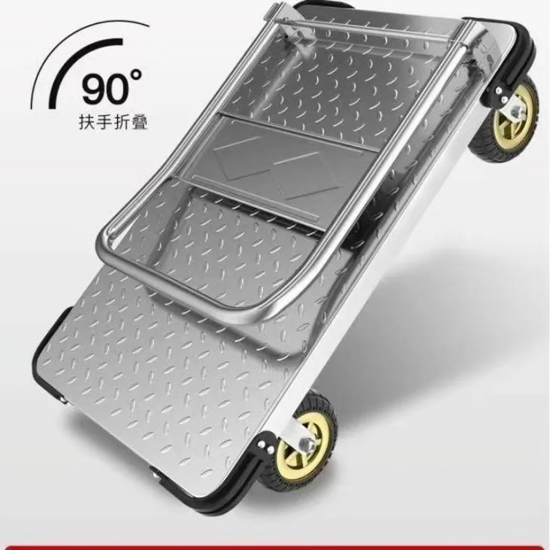 상품 운반 트롤리 슈퍼마켓 창고 접이식 트롤리 무소음 평판 트레일러 노동 절약 및 공간 절약 이동 트럭