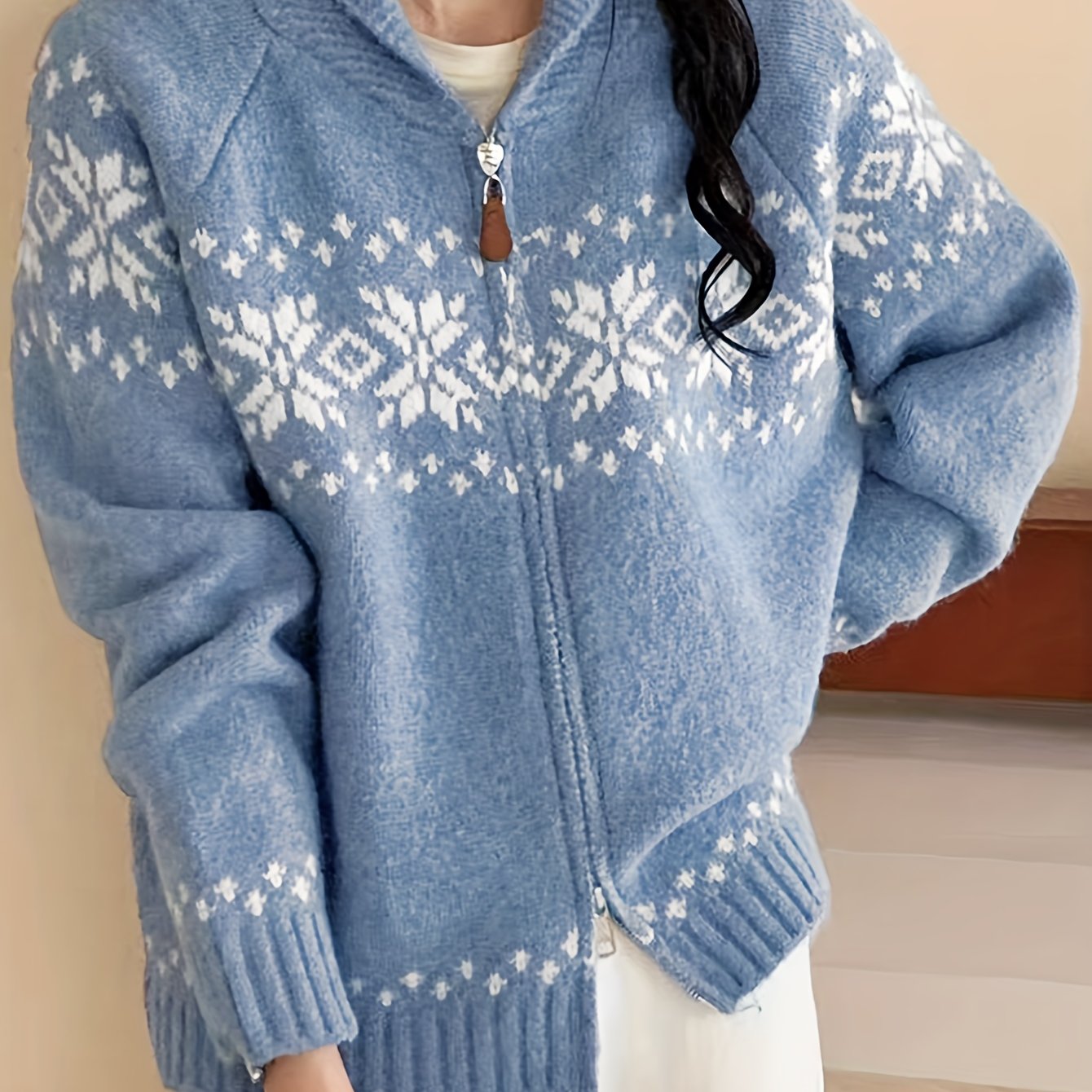 TEMU 여성용 아카데믹 스타일 가을/겨울 신상 자카드 더블 지퍼 스웨터 가디건, 루즈 레이지 턴칼라 아우터웨어 탑