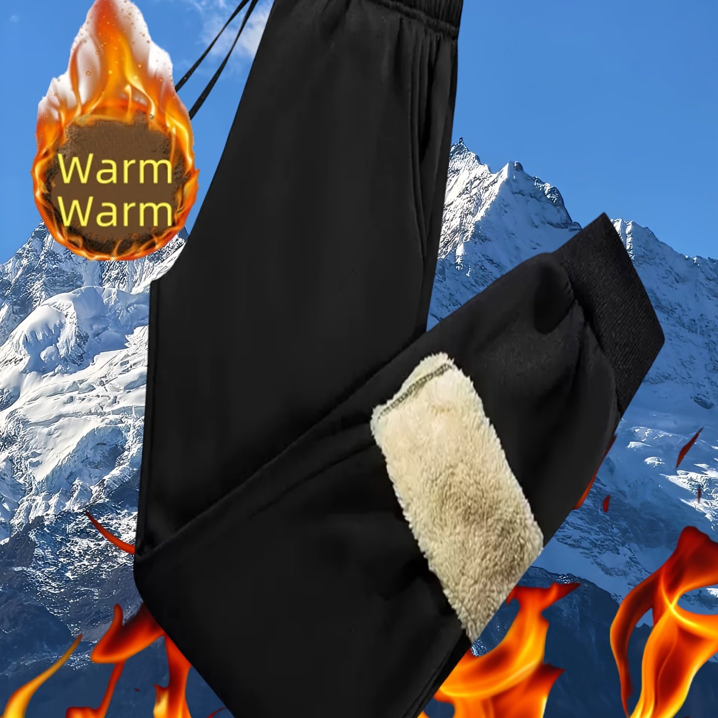 TEMU 남성용 헤비듀티 안감 조거 팬츠 - 겨울용 보온 슬림핏 커프드 레그, 두꺼운 방한 긴 바지, 노년층 및 중년층용, 세탁기 사용 가능 일상용 팬츠 (솔리드 컬러)