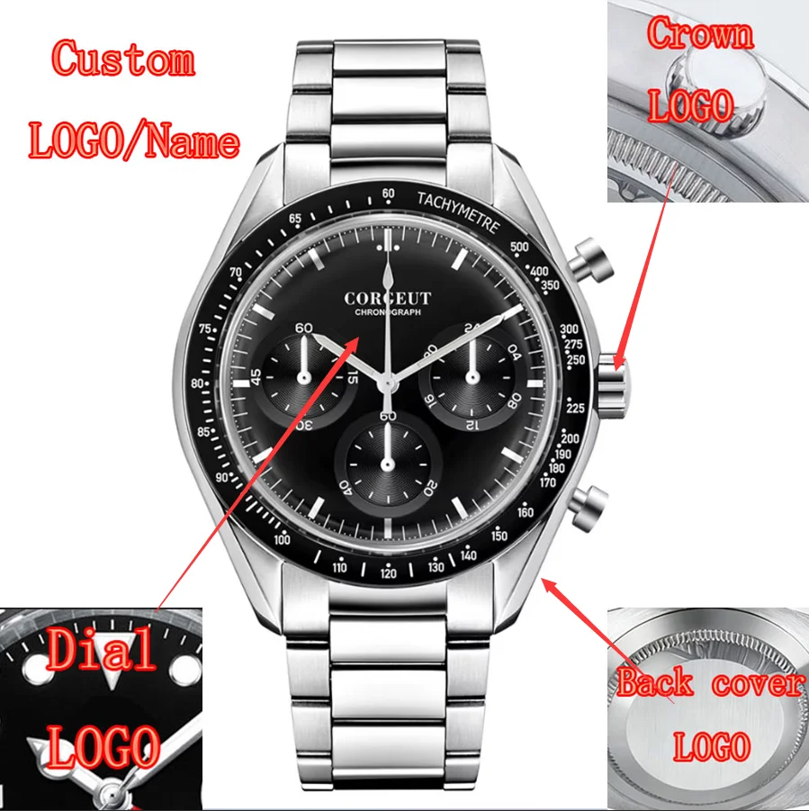 커스텀 로고 코르게트 40mm 크로노그래프 남성용 시계 방수 가죽 스포츠 시계 VK63 쿼츠 남성 시계