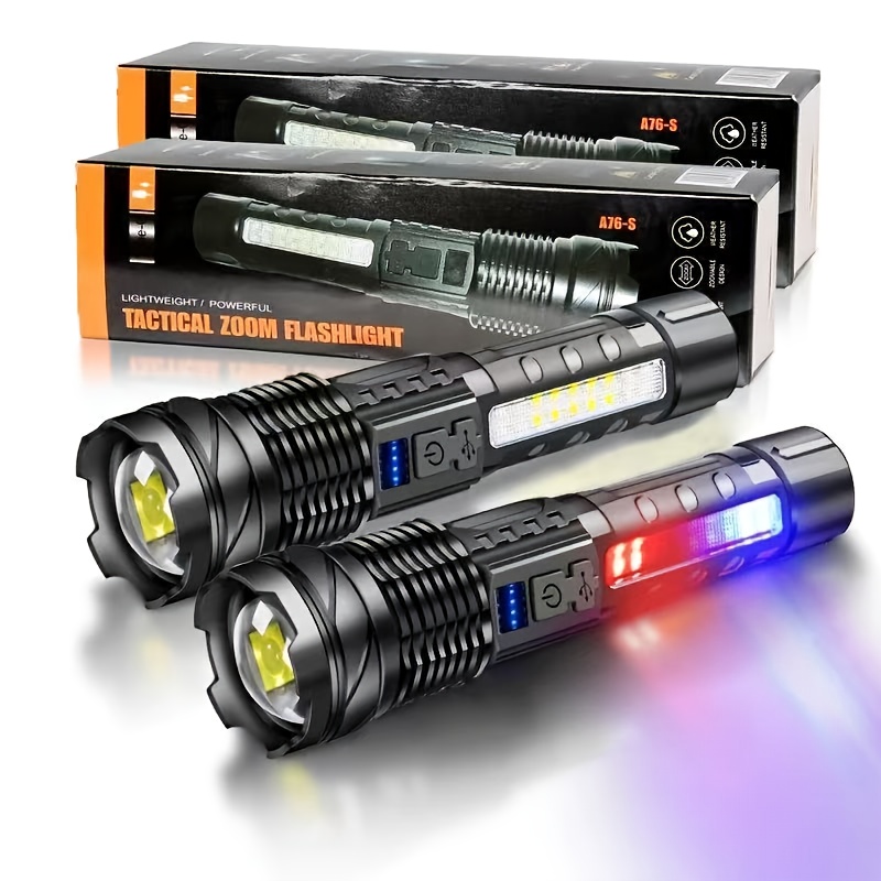 TEMU 고출력 LED 손전등 2개, 휴대용 충전식 LED 라이트, 망원 줌 손전등, 캠핑 랜턴, 여행, 캠핑, 하이킹, 낚시 및 비상 상황에 적합.