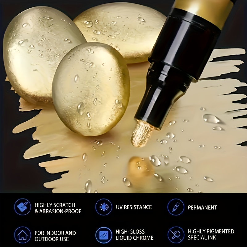 TEMU 실버/골드 | 크롬 미러 효과 마커 - 고광택, 미러 실버, 메탈릭 마감 - 빠른 건조, 방수, 오래 지속, 퇴색 방지. 카드, 포스터, 머그잔, 세라믹, 유리 공예에 적합. 다용도 표면, 다이아이티 공예, 수공예 필수품, 표면 마킹, 광택 필기, 방수 잉크, 내구성 마커, 고광택 잉크, 메탈릭 마감 펜, 공예 애호가용