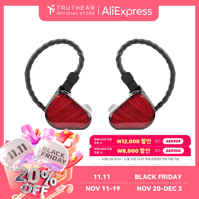 Truthear x Crinacle 제로 레드 이어폰, 듀얼 다이내믹 드라이버, 인이어 헤드폰, 0.78 2 핀 케이블