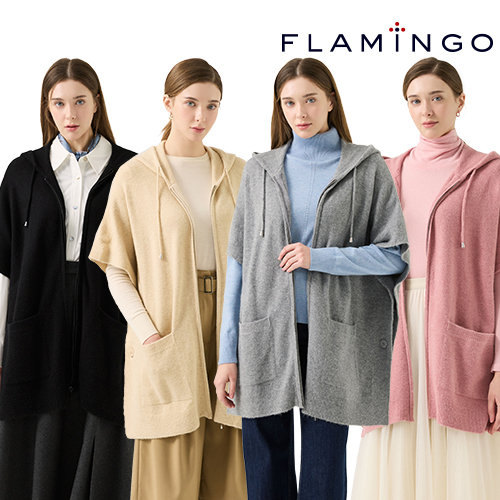[봄특가][후라밍고] PRE-SPRING 울 블렌디드 후드 케이프 니트 코트 1종