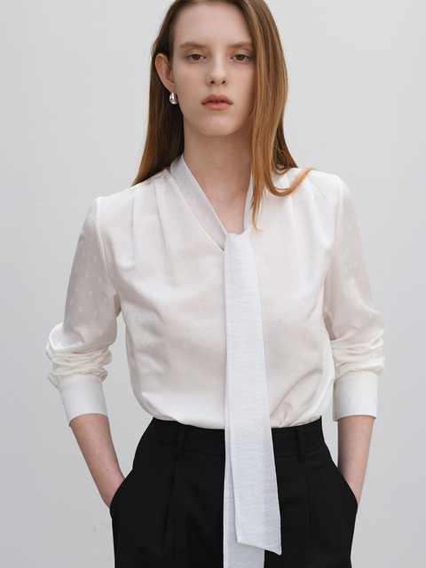 [이보크에라] 브이넥 실크 타이 블라우스(화이트)