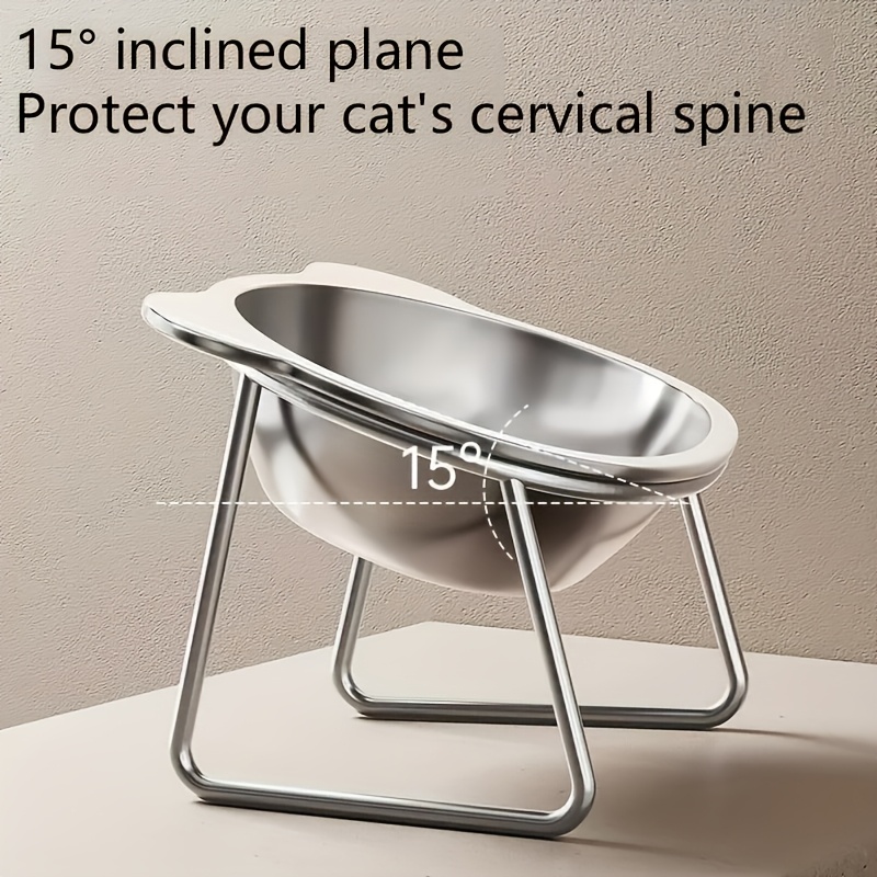 TEMU 스테인리스 스틸 고양이 & 강아지 사료 및 물 그릇 - 헤비듀티 투인원 고정식 사료 그릇 - 미끄럼 방지 베이스, 위생적인 곡선 모서리 & 15° 높이 조절 피더로 관절 건강에 최적, 물/건사료용 쉬운 세척 펫 그릇 (고양이/강아지 그릇 호환)