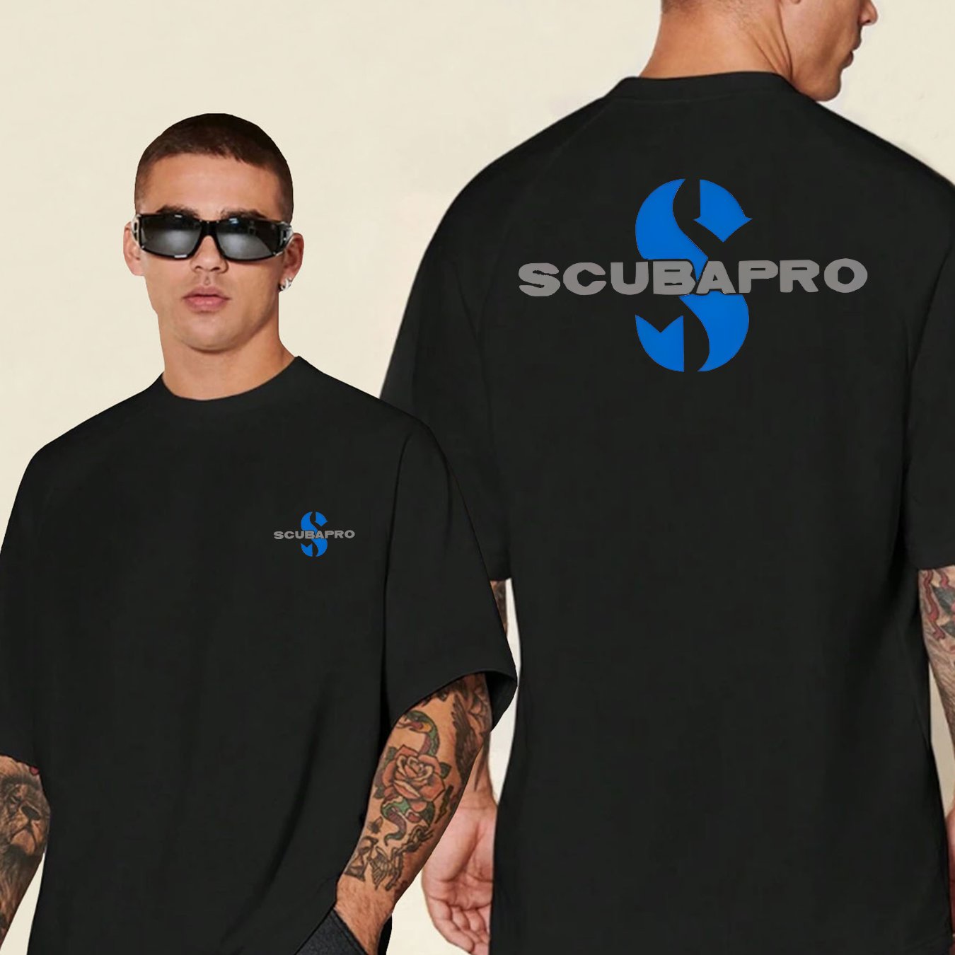 TEMU 남성용 트렌디한 멀티핏 티셔츠, 유럽과 미국 스타일, 가슴과 등에 대형 SCUBAPRO 브랜드 로고. 심플하고 세련된 디자인, 다양한 상황에 적합