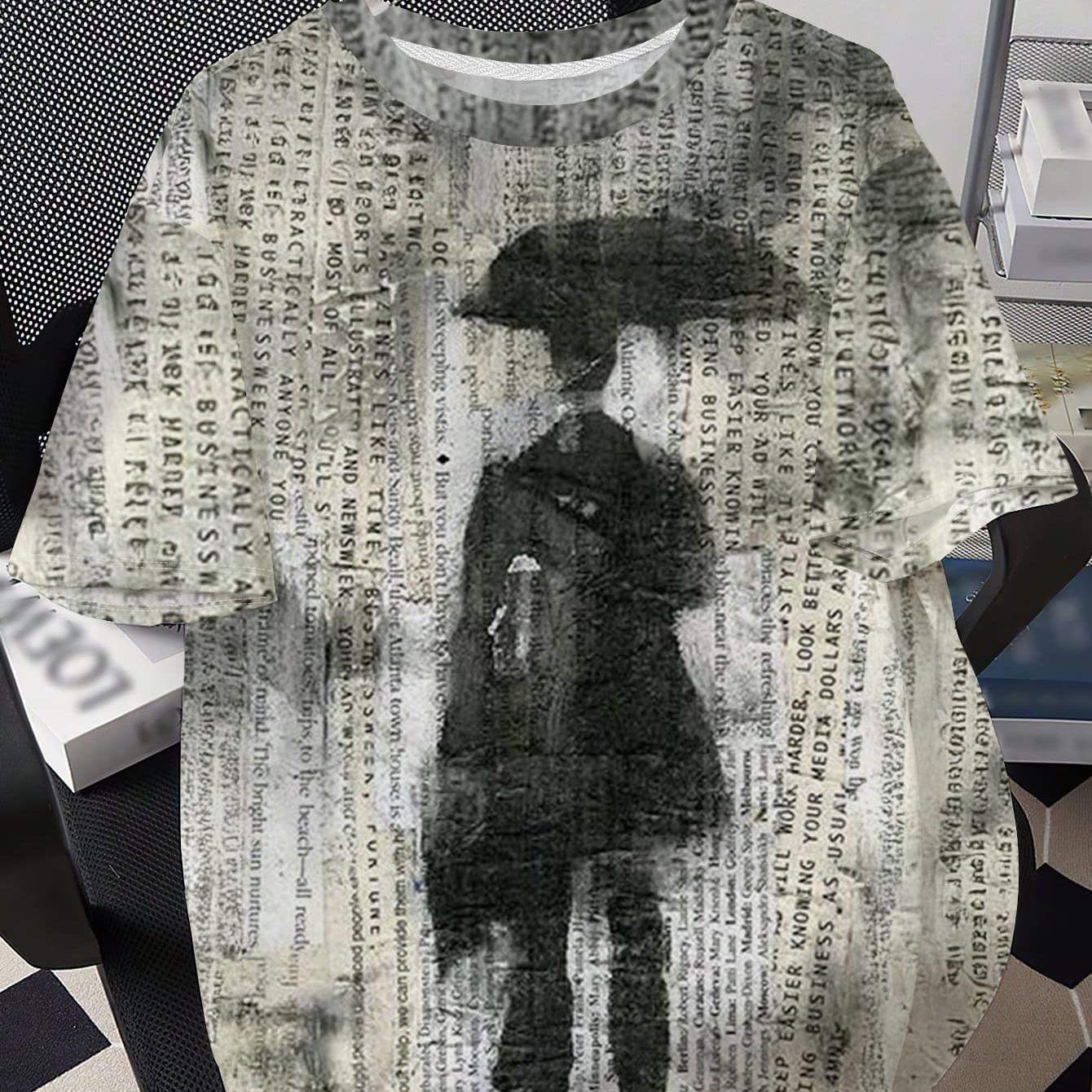 TEMU 남성 빈티지 신문 초상화 프린트 반팔 티셔츠, 캐주얼하고 활용도 높은 상의