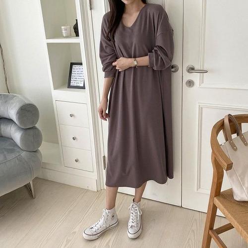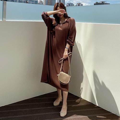 [오노마] ONM 루즈핏 여성 엑스끈 퍼프 롱 원피스 NB24316
