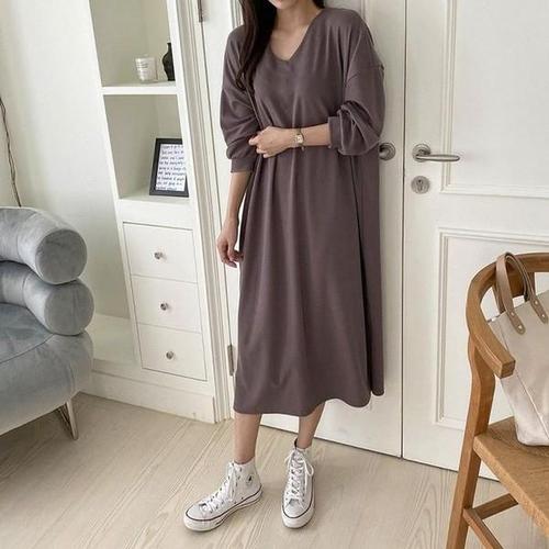 [셀러허브_여성트랜드패션]ONM 루즈핏 여성 엑스끈 퍼프 롱 원피스 NB24316