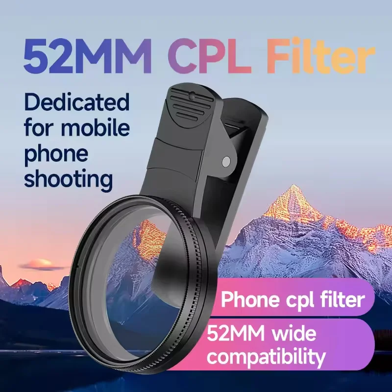 52MM CPL 필터 원형 범용 휴대용 편광판 카메라 렌즈 모바일 사진 편광판 스마트 폰용 반사 없음