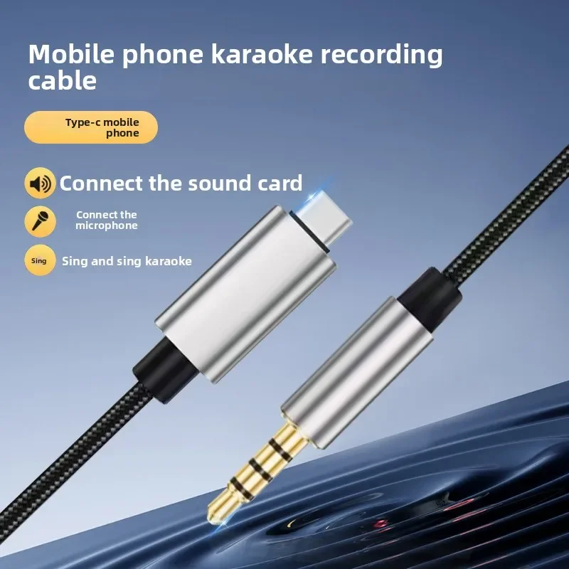 4섹션 휴대폰 오디오 케이블 자동차 AUX, 스피커, 라이브 스트리밍, 노래방 및 사운드 카드용 Type-C ~ 3.5mm 오디오 케이블